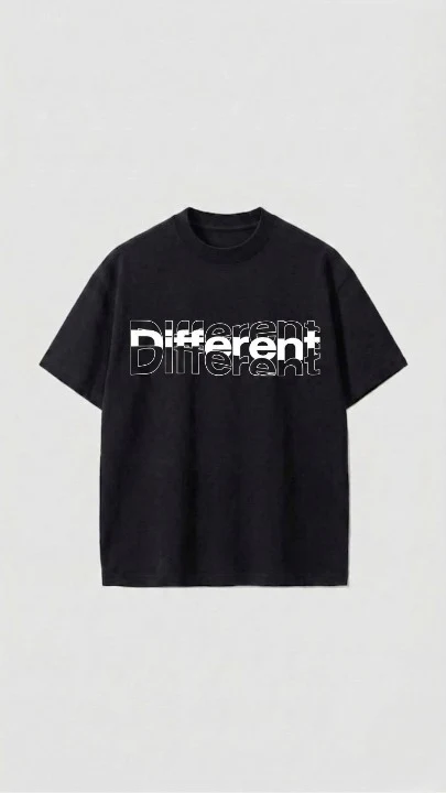 Keep your style simple yet impactful with this premium black graphic t-shirt featuring a bold “Different” typography design. The layered text effect gives it a unique and modern look, perfect for individuals who embrace their individuality and stand out from the crowd.